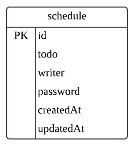 | 전체 일정 조회 | GET | schedules | 요청 param | 다건 응답 정보 | 200: 정상조회 |
