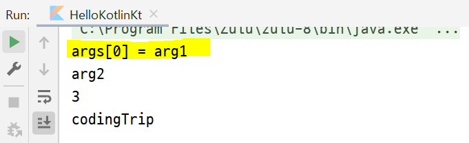 실행을 다시 해보면 args[0]=arg1이 출력되는 것을 볼 수 있습니다.