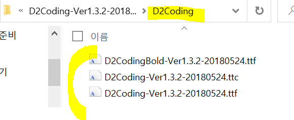 쭉 내려가시다보면 D2Coding-Ver...가 보이는데요.
