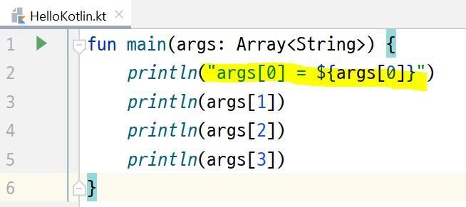 args: Array<String>로 정의된 타입이 지정됩니다.