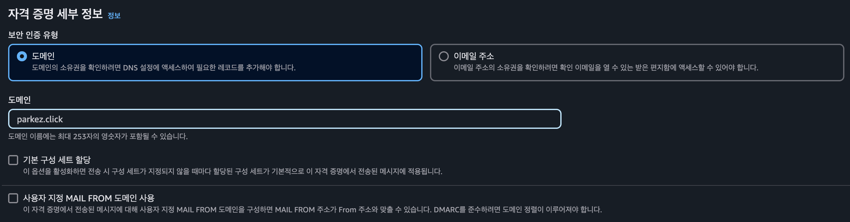 | 도메인 | 보유한 도메인 전체에서 메일 발송 시 사용 |