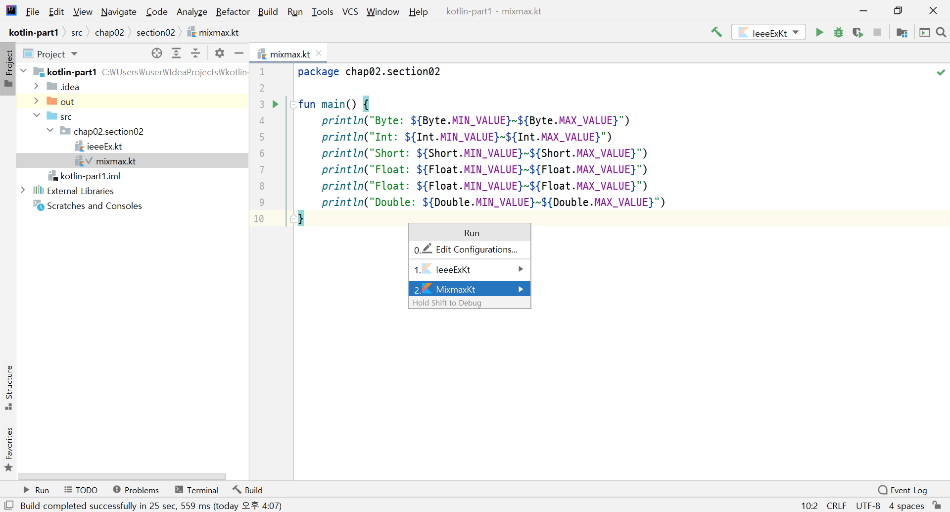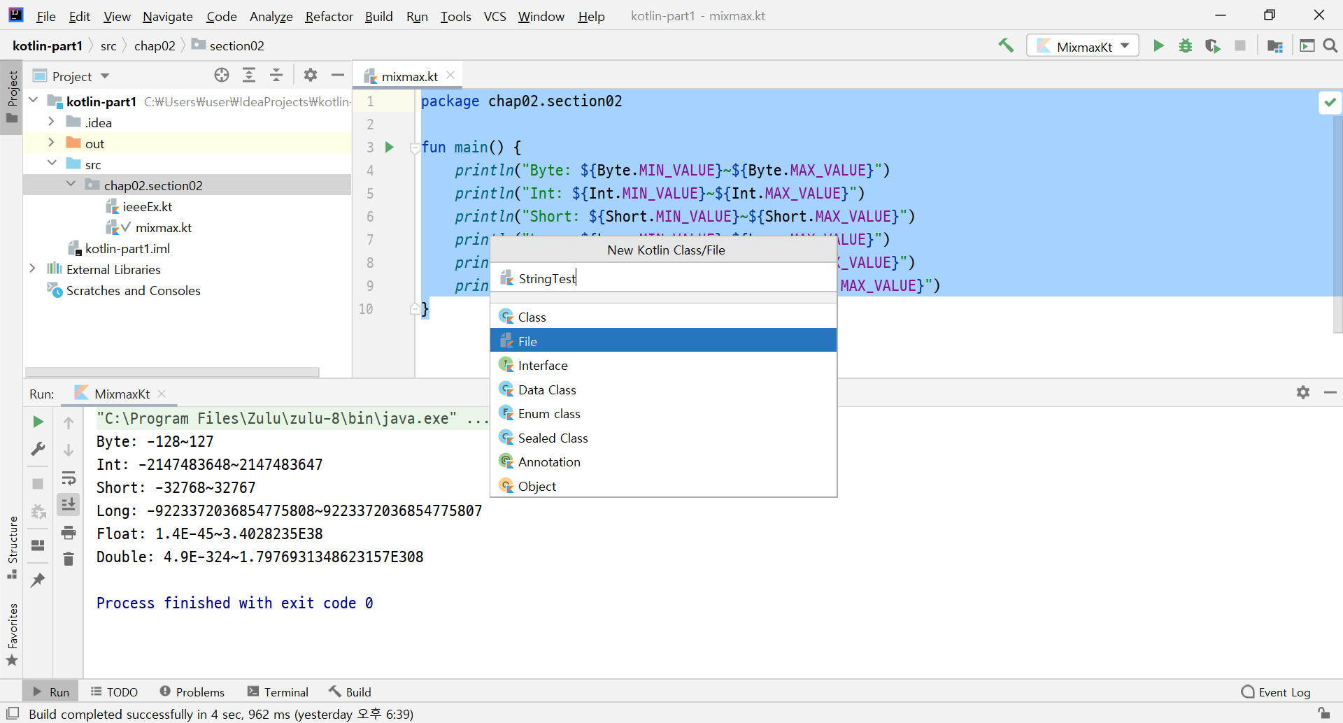 minmax라는 새로운 코틀린 파일을 만듭니다.