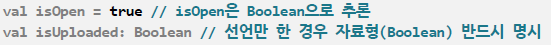 선언만 할 경우 자료형 Boolean을 반드시 명시해야 한답니다.