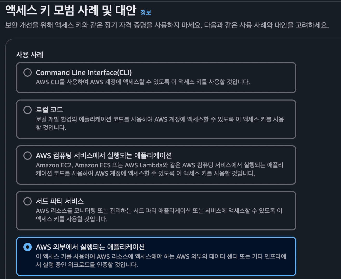 ✔️ AWS 외부에서 실행되는 애플리케이션 선택 - 발급된