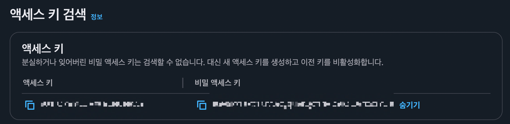- Secret Key는 한 번만 표시되니 반드시 안전한 곳에 보관
