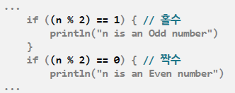 이 나머지 연산은 홀수, 짝수를 구할 때 유용합니다.