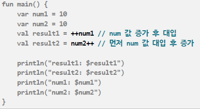 ++num1은 num1의 값이 먼저 증가한 후 result1에 대입하는 것입니다.