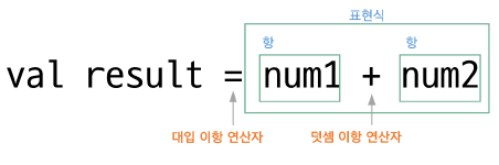 왼쪽 항과 오른쪽 항을 더해서 결과를 result에 담는 겁니다.