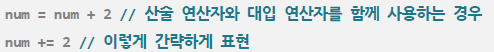 num += 2 두 항을 더하고 왼쪽 항에 대입하기 위해서 쓰는 식을 이렇게 줄일 수 있습니다.