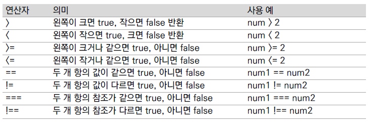 >은 왼쪽이 크면 true, 작으면 false를 반환합니다.
