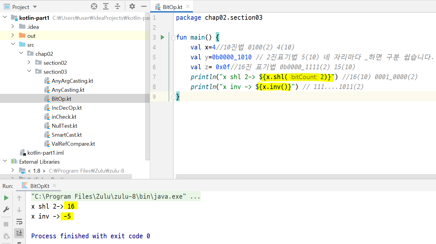val z= 0x0f//16진 표기법 0b0000_1111(2) 15(10)