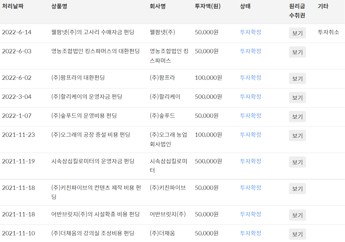 지금은 온라인투자연계금융업상 허가받은 정식 금융기관이라고 하네요.