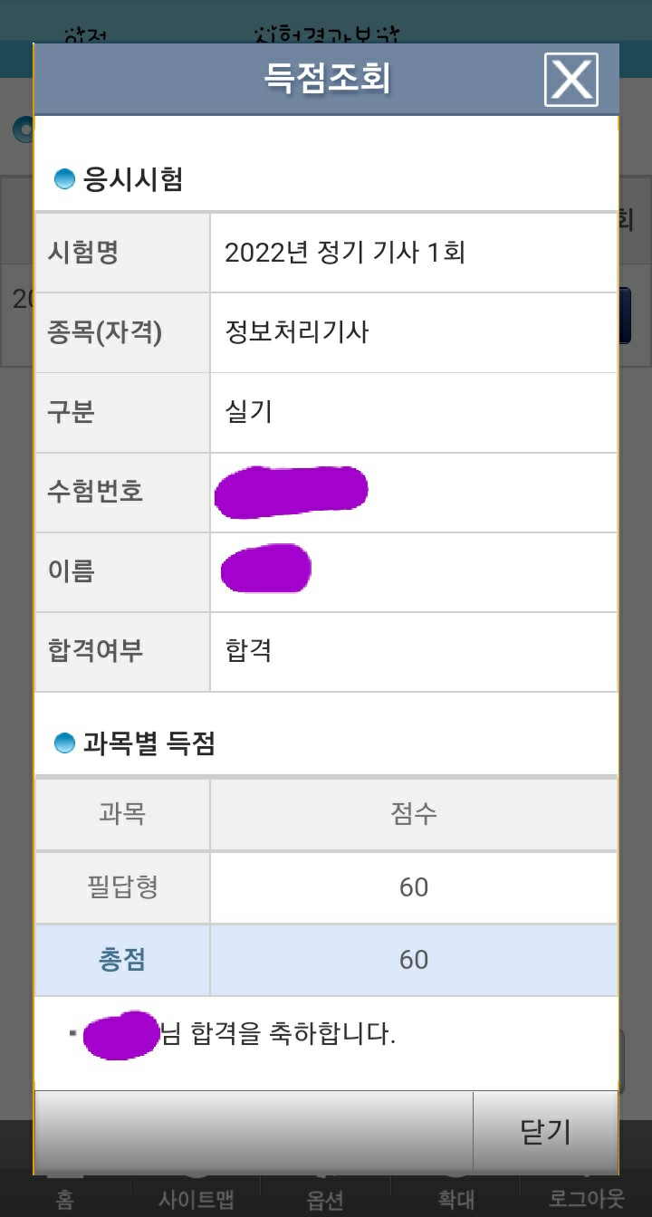 2022년 6월 17일 정처기 실기 합격 발표일이었는데요