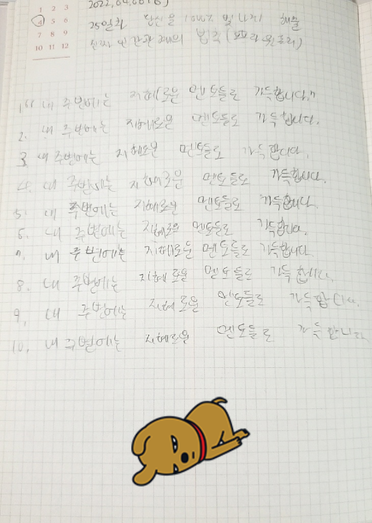 아침마다 10번 손으로 쓰는 것이 힘들기도 하고