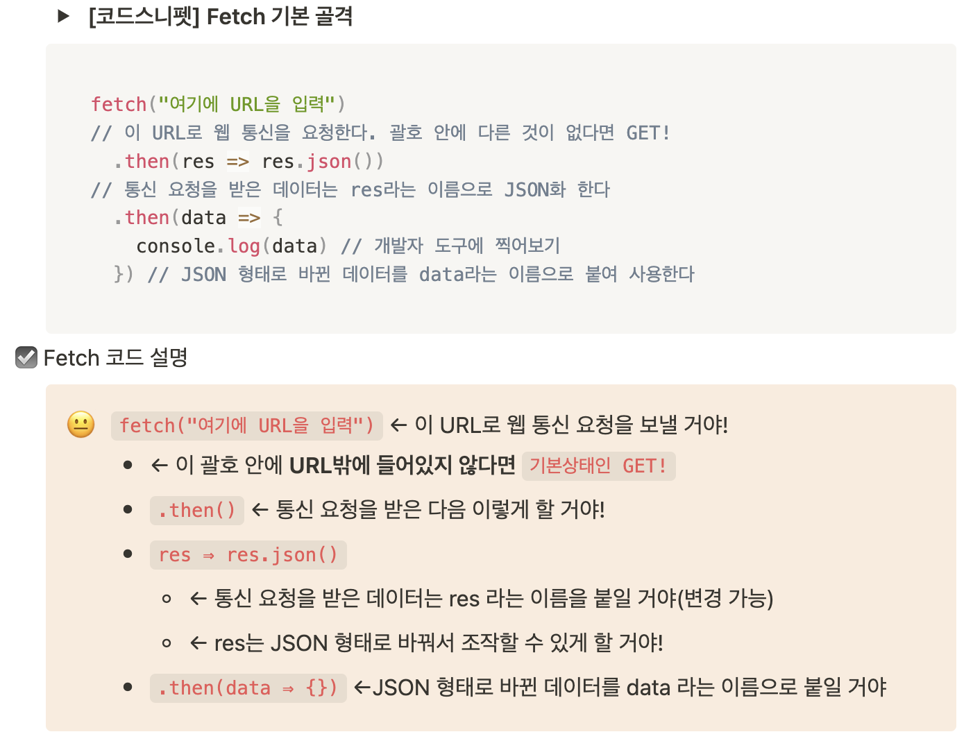 강의에서는 fetch 코드를 그대로 복사하고 사용만 해서