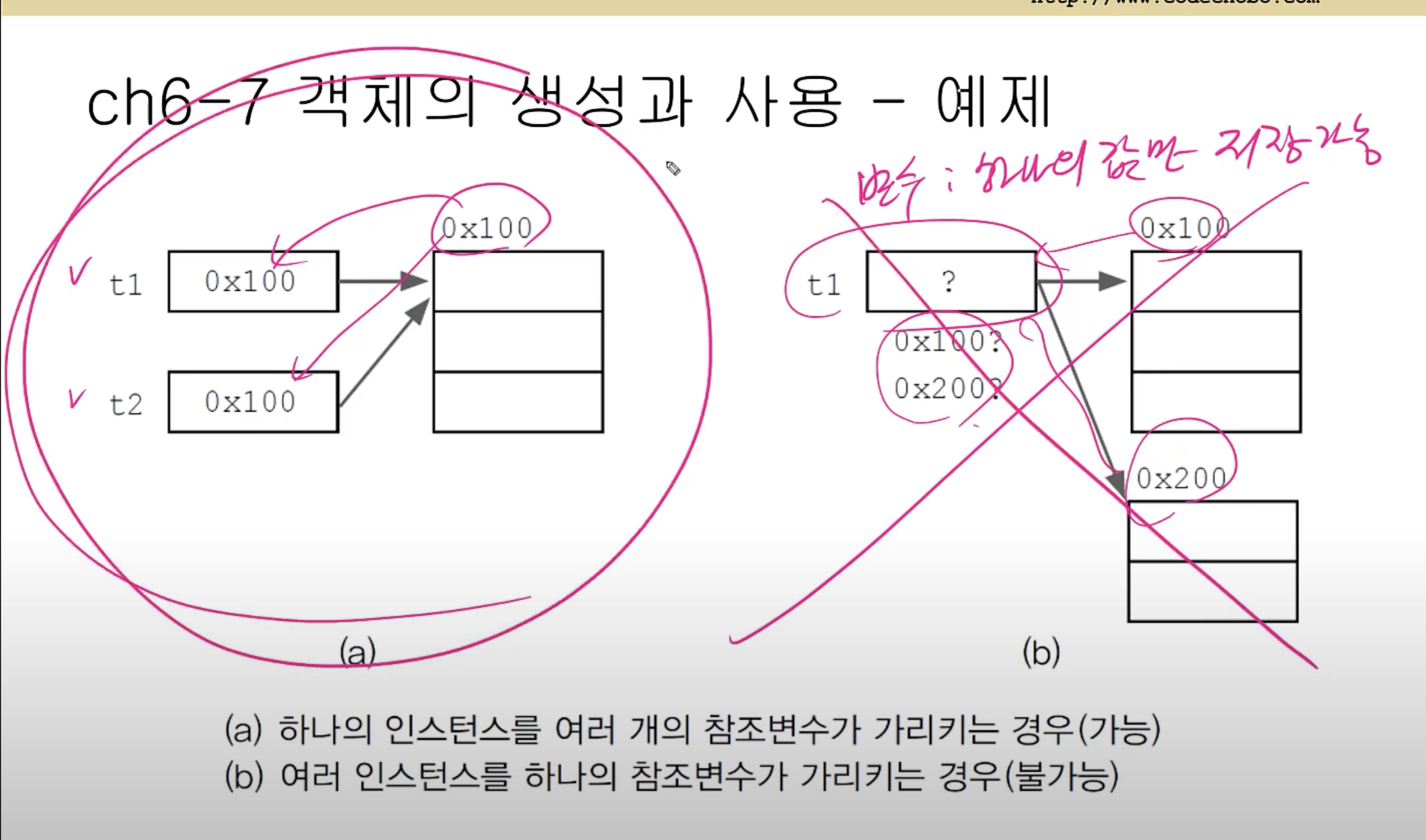 -> Tv 객체가 만들어지면 t 변수에는 Tv 객체의 주소 값이 저장됨