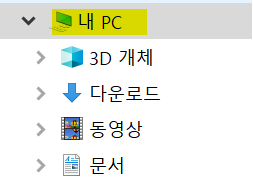 파일 탐색기(폴더 버튼)에서 내 PC를 누릅니다.