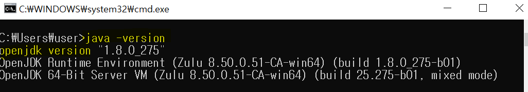 java -version을 입력해서 위처럼 버전이 잘 나오면 설치가 잘 된 것입니다.