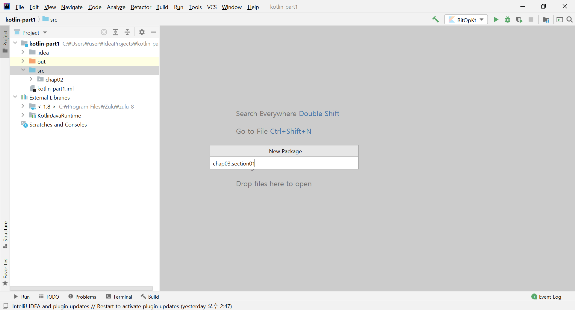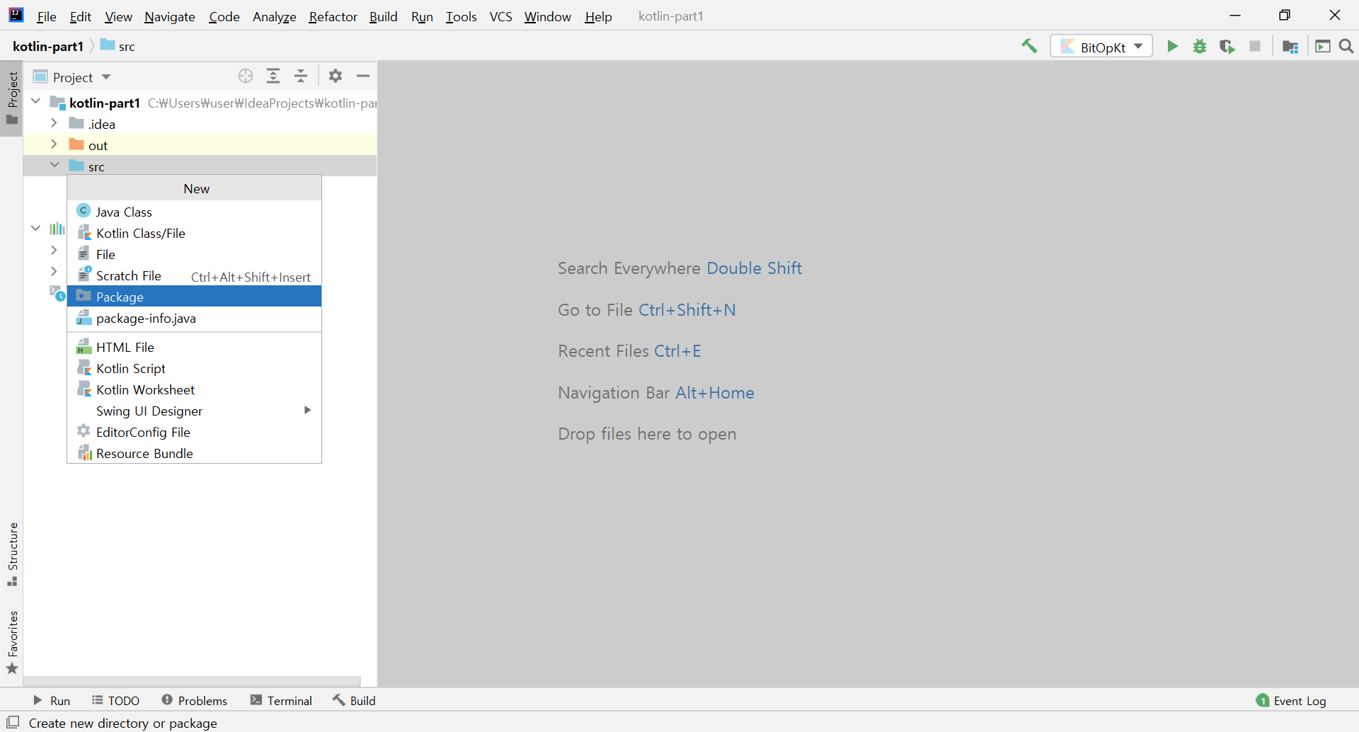 src폴더에 Alt+Insert를 하여 Package를 만듭니다.