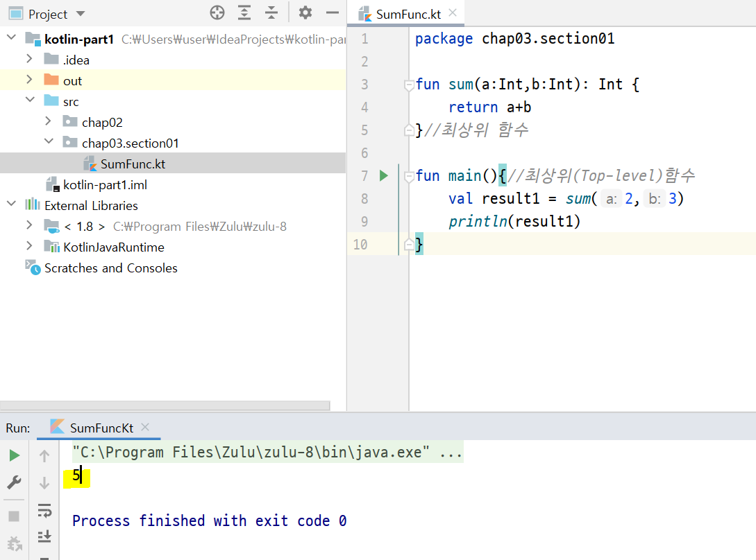 [부스트코스]📱코틀린 3-1 함수를 선언하고 호출해 보기 (1)