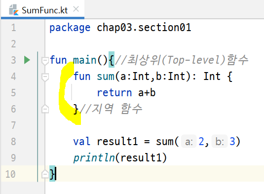 코틀린은 이런 함수를 만약 return문이 하나인 경우에는