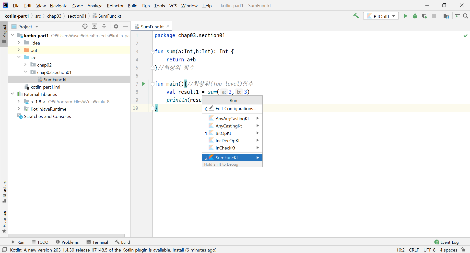 오늘은 "코틀린 프로그래밍 1/2(함수편)"