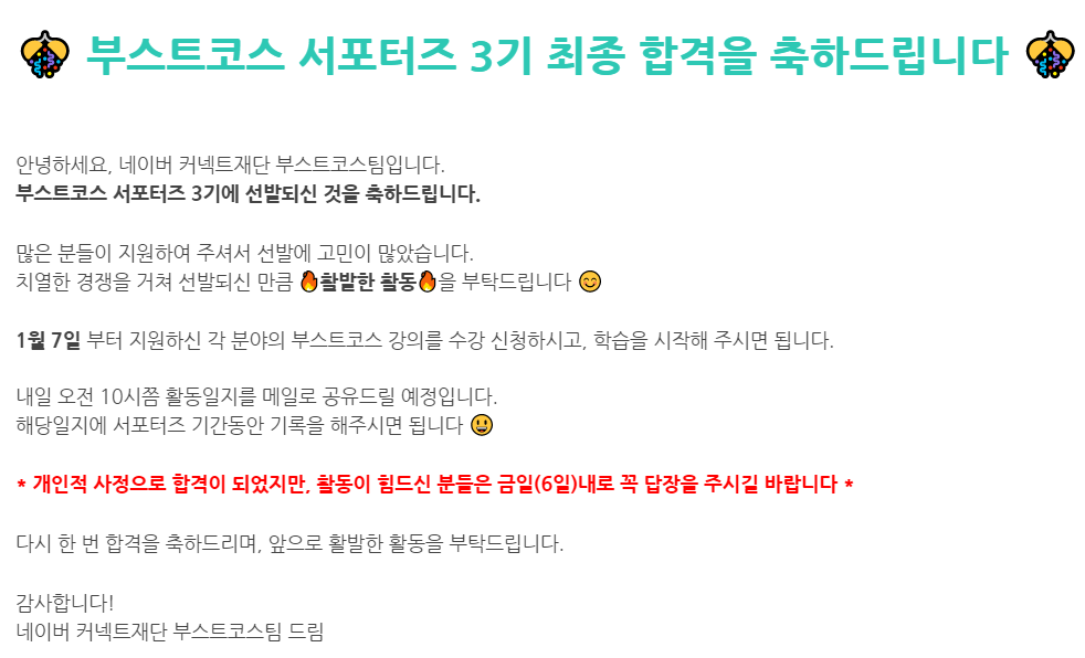 [부스트코스] 서포터즈 3기 합격! 정말 감사합니다 ㅠㅠ