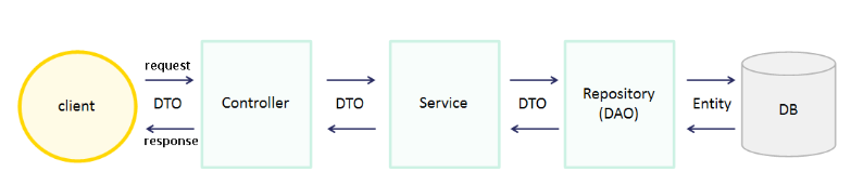 - DTO(Data Transfer Object): 프로세스 사이에서 데이터를 전송하는 객체