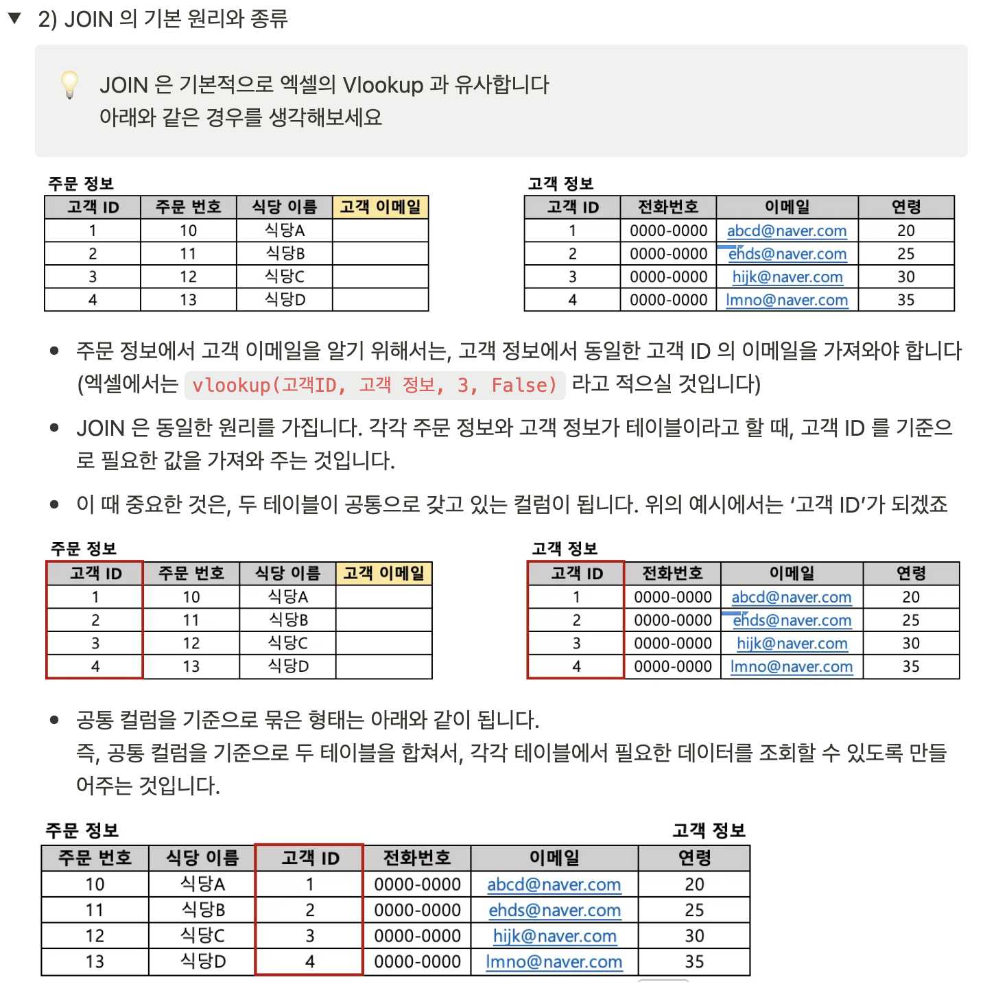 엑셀보다 쉽고 빠른 SQL 5주차1) pivot table 만들기피벗 테이블은 정말 실제 회사에서 자주 사용하는 엑셀 기능이다.그래서 더욱 집중해서 공부하기 시작했다. 강의 도중 피벗 테이블 쿼리를 만들 때,왜 max로 묶어주는지 이해가 가지 않아서 따로 검색을 해보았다.-> 이미 서브쿼리 테이블에서 그룹에 따라 나눠서 값을 정리한 상태이기 때문에(그 그룹에서는 유일한 값 ex)한국인 남자, 한국인 여자 등)max로 묶어주어도 무방하다고 이해를 했다. 숙제select cuisine_type, max(if(age_group=10,cnt_order,0)) "10대", max(if(age_group=20,cnt_order,0)) "20대", max(if(age_group=30,..